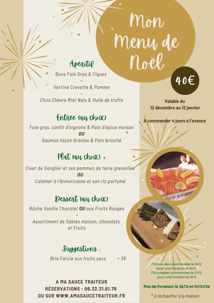Célébrez Noël avec un menu gourmand, fait maison et élaboré à partir de produits frais et de saison.